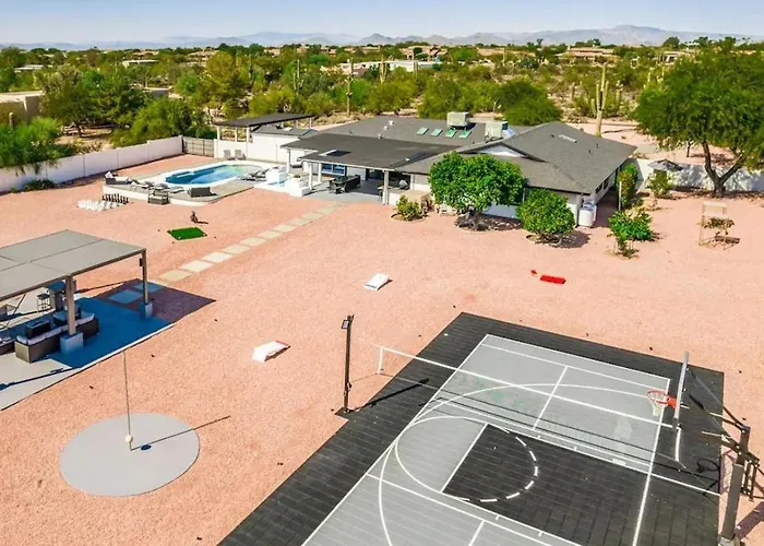 The 3-bedroom The Vacation Spot Villa Scottsdale is located about 25 minutes' walk from Arizona Fine Art Expo and provides a Jacuzzi bathtub.